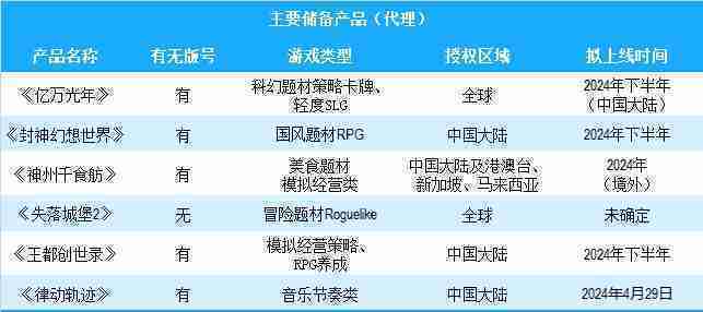 公司有多款储备产品,,,,涵盖放置类、、、策略类、、RPG、、Roguelike等多元化游戏品类,,储备的主要自研和代理产品如下::