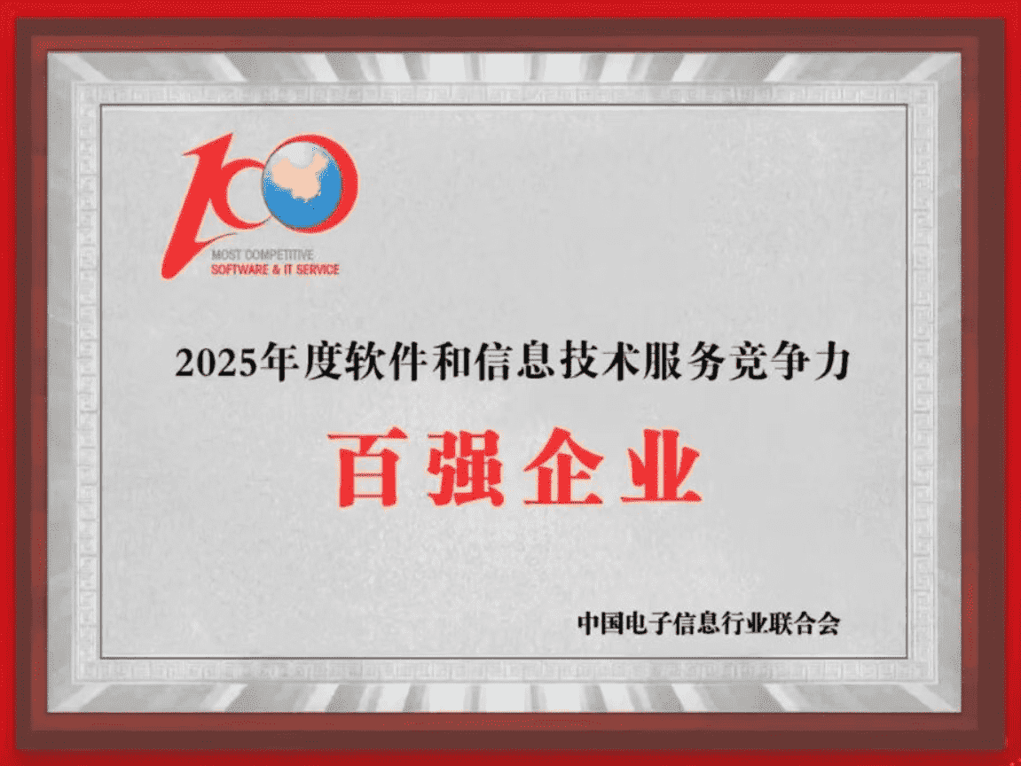 20251015日,,,中国电子信息行业联合会权威揭晓“2025年度软件和信息技术服务竞争力前百家企业名单。。。中国软件百强企业评选活动是由工业和信息化部全程指导、、中国电子信息行业联合会牵头组织发起,,是反映中国软件产业发展最高水平的“风向标”。。。厦门亚星管理网络技术股份有限公司(以下简称“亚星管理”或“公司”)凭借自身在软件技术领域的卓越表现与杰出创新能力,,,,第六次入选“全国软件和信息技术服务竞争力前百家企业”称号。。。